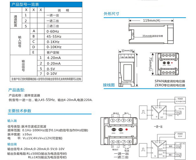 JD384F頻率變送器輸出范圍:DC4-20mA、0-20mA、0-5V、0-10V、1-5V等用戶(hù)需要的標準信號