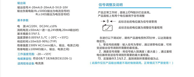 BS-2全隔離信號調理器 輸出范圍:4-20mA、標準信號