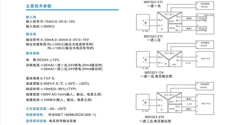WS1521信號轉換模塊 詳細技術(shù)參數及接線(xiàn)方式: