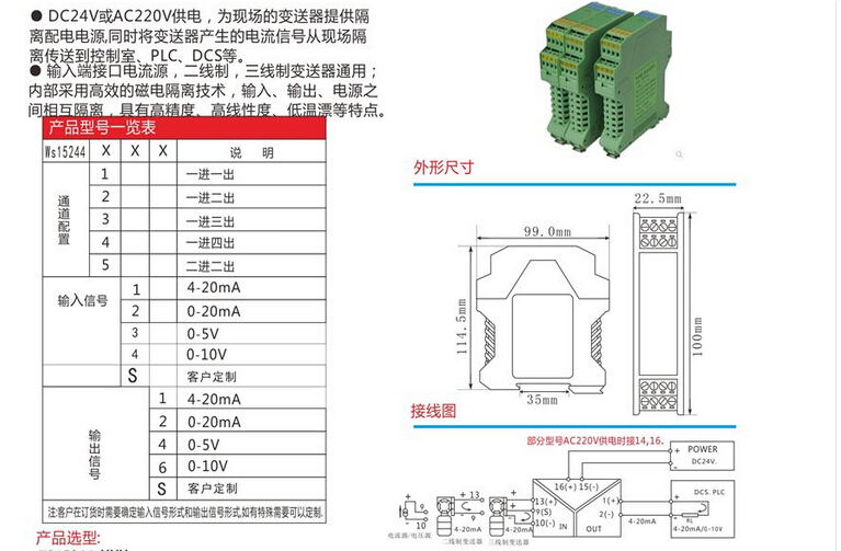信號隔離器分配器輸入范圍:0-10V、4-20mA、0-20mA、0-5V、0-75mV等用戶(hù)特定規格信號隔離器分配器 輔助電源:DC24V 或AC220V, 高精度:0.1%