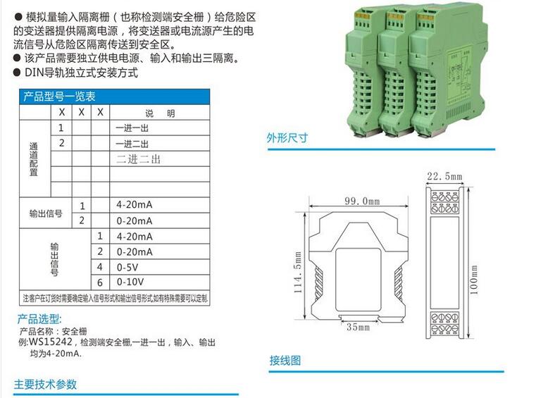防爆安全柵 安全柵模塊,全隔離信號分配器 隔離柵,信號隔離器模塊,安全柵,電流轉換模塊。將輸入信號變換為兩路相互隔離的信號,低功耗,低熱量,低漂移,DIN T型導軌安裝