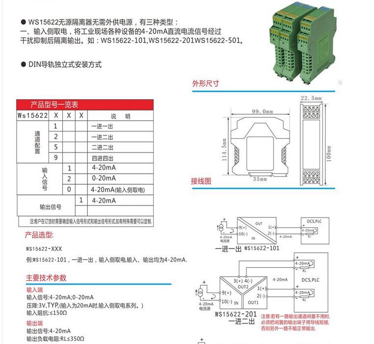 WS15622無(wú)源過(guò)程信號隔離器,全隔離信號隔離器,將輸入的四路信號隔離輸出,無(wú)需外接電源可正常工作,輸入輸出隔離,傳輸精度高,標準DIN T型導軌安裝
