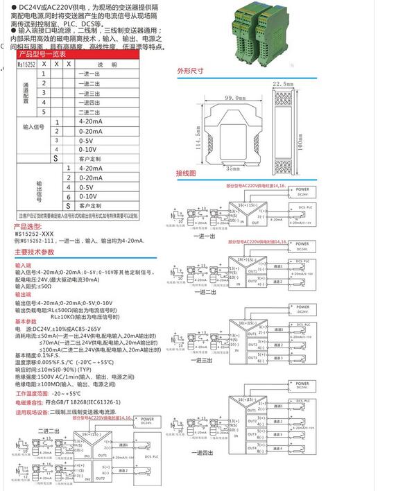 WS15252信號隔離器 高精度0.2% 帶配電24V