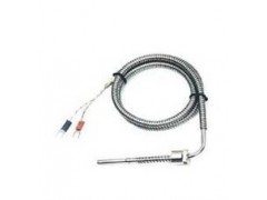 WRET-01 型熱電偶的作用原理,分度特性及允許偏差,參比端(冷接點(diǎn))溫度補償, 以及與顯示測量?jì)x表的聯(lián)接方法均與一般熱電偶相同。WRET-01型熱電偶的結構如圖所示,由保護管,安裝螺栓.鎖緊卡套,彈簧及熱電偶導線(xiàn)等組成。