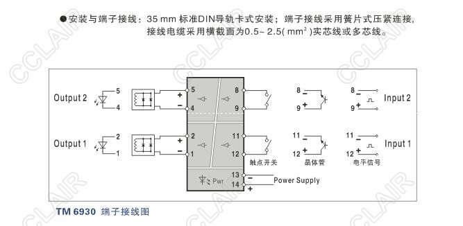 TM6930開(kāi)關(guān)量輸出隔離器端子接線(xiàn)圖