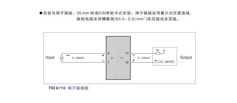 TM6710 直流電流輸入二線(xiàn)制隔離器端子接線(xiàn)圖