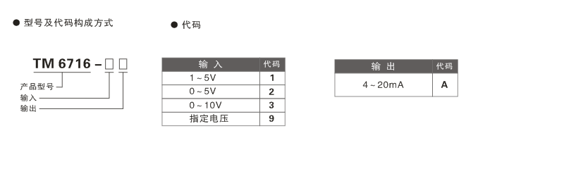 TM6716 直流電壓輸入二線(xiàn)制隔離器 選型、訂貨代碼