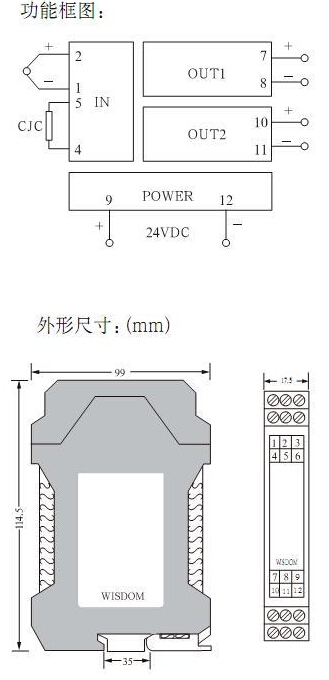產(chǎn)品型號:WS90602熱電偶全隔離雙輸出信號調理器