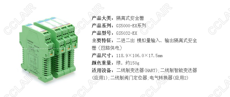 GS5032-EX 二進(jìn)二出 模擬量輸入、輸出隔離式安全柵(回路供電)