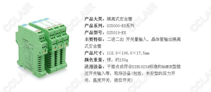 開(kāi)關(guān)量輸入隔離式安全柵,接收來(lái)自危險區的干接點(diǎn)或符合DIN19234標準的NAMUR型接近開(kāi)關(guān)輸入, 通過(guò)安全柵隔離傳輸到安全區晶體管輸出,它具有輸入斷線(xiàn)檢測報警指示及輸入輸出反相設置功能。該產(chǎn)品需要獨立供電,電源、輸入和輸出三隔離