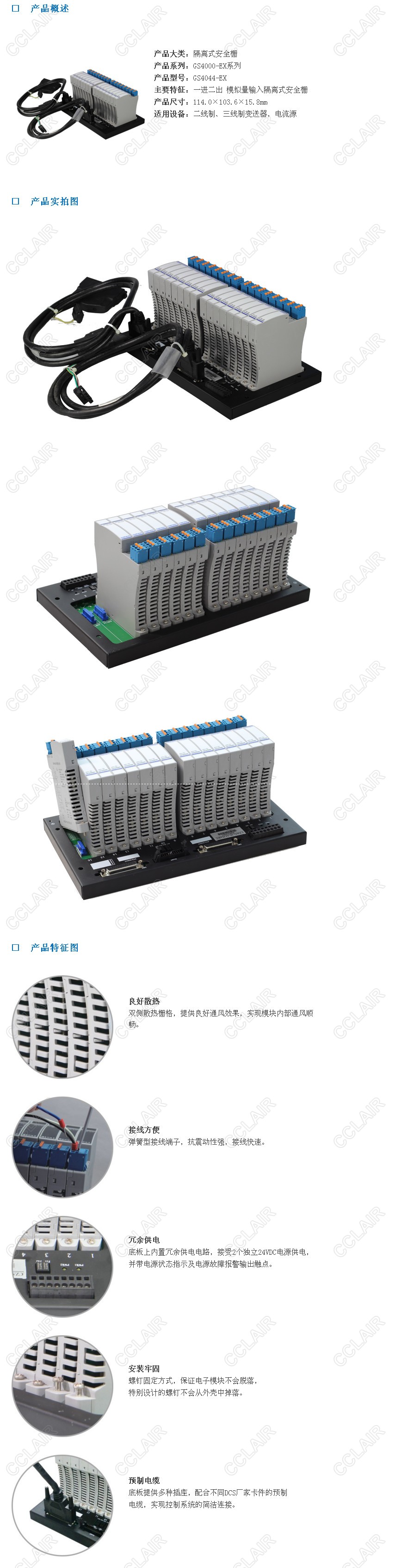 GS4044-EX為模擬量輸入隔離柵,給危險區的變送器提供隔離電源,將變送器產(chǎn)生的0~20mA(也可以是0/4~20mA電流信號)從危險區隔離傳輸到安全區,同時(shí)支持HEART數字信號雙向傳輸。該產(chǎn)品需要獨立供電,電源、輸入和輸出三隔離。