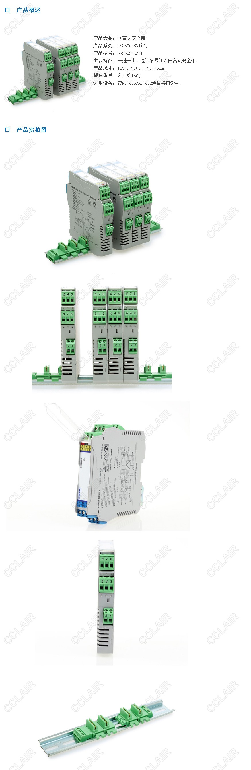 GS8598-EX.1 一進(jìn)一出 RS-485全雙工輸入RS-485全雙工輸出隔離式安全柵