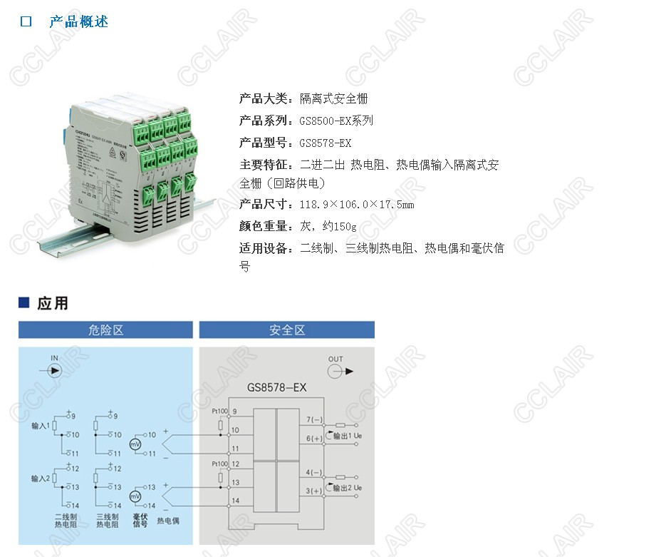 回路供電型隔離式安全柵,將現場(chǎng)的熱電阻、熱電偶、毫伏信號、電位器信號轉換成0/4~20mA的電流信號或0~5V電壓信號,從危險區隔離傳送到安全區。它具有冷端補償功能,是智能型的,可通過(guò)計算機對熱電阻、熱電偶、電位器的分度號、量程范圍等進(jìn)行組態(tài)。