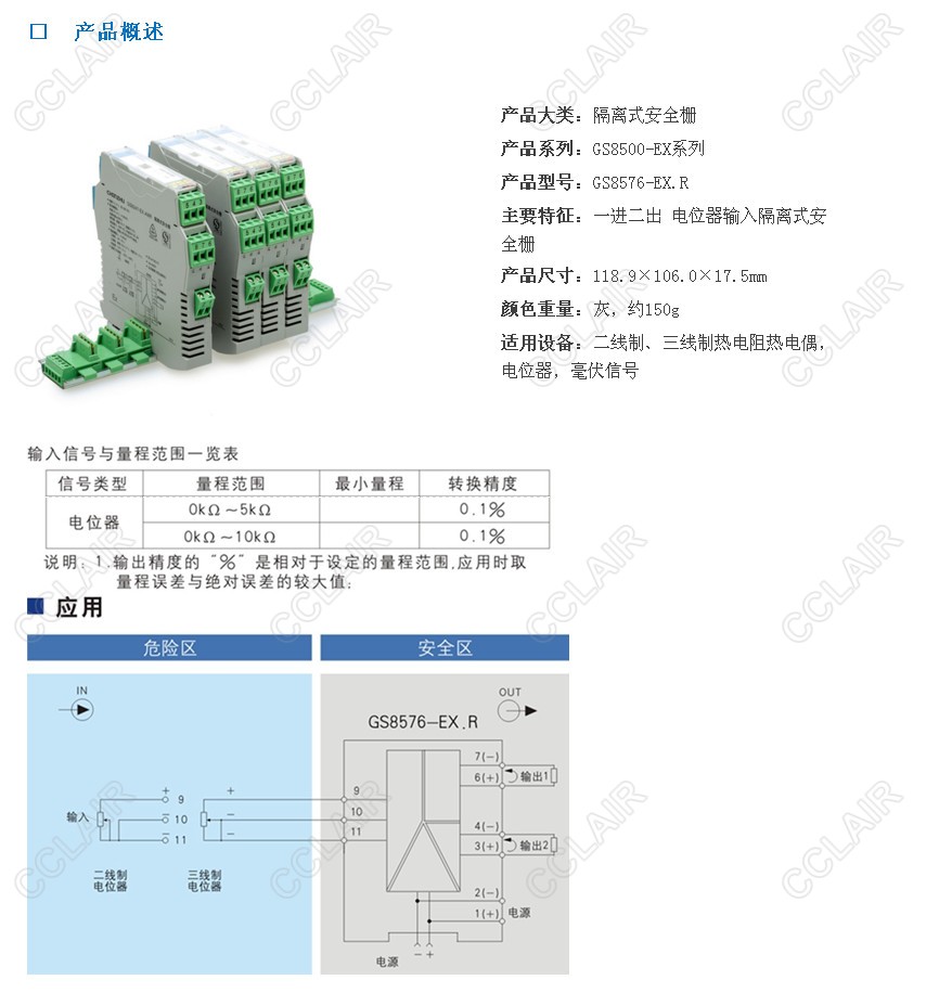隔離式安全柵,將現場(chǎng)的熱電阻、熱電偶、毫伏信號、電位器信號轉換成0/4~20mA的電流信號或0~5V電壓信號,從危險區隔離傳送到安全區。它具有冷端補償功能,是智能型的,可通過(guò)計算機對熱電阻、熱電偶、電位器的分度號、量程范圍等進(jìn)行組態(tài)。該產(chǎn)品需要獨立供電,電源、輸入和輸出的三隔離。