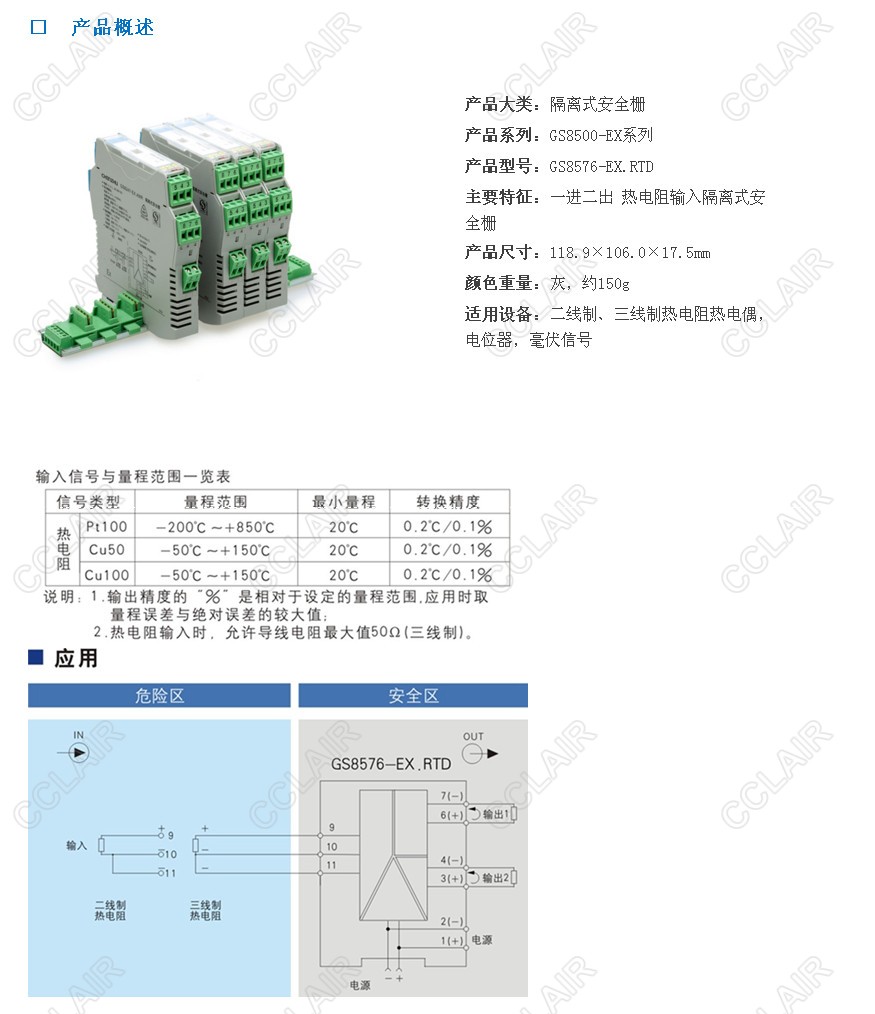 隔離式安全柵,將現場(chǎng)的熱電阻、熱電偶、毫伏信號、電位器信號轉換成0/4~20mA的電流信號或0~5V電壓信號,從危險區隔離傳送到安全區。它具有冷端補償功能,是智能型的,可通過(guò)計算機對熱電阻、熱電偶、電位器的分度號、量程范圍等進(jìn)行組態(tài)。該產(chǎn)品需要獨立供電,電源、輸入和輸出的三隔離。