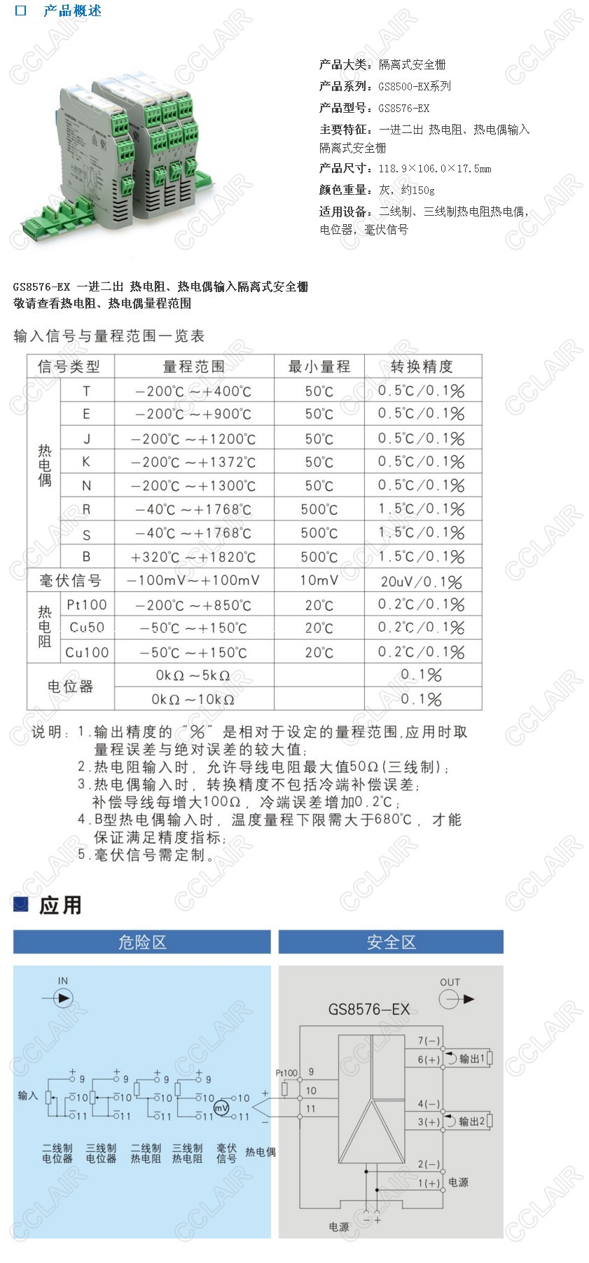 隔離式安全柵,將現場(chǎng)的熱電阻、熱電偶、毫伏信號、電位器信號轉換成0/4~20mA的電流信號或0~5V電壓信號,從危險區隔離傳送到安全區。它具有冷端補償功能,是智能型的,可通過(guò)計算機對熱電阻、熱電偶、電位器的分度號、量程范圍等進(jìn)行組態(tài)。該產(chǎn)品需要獨立供電,電源、輸入和輸出的三隔離。