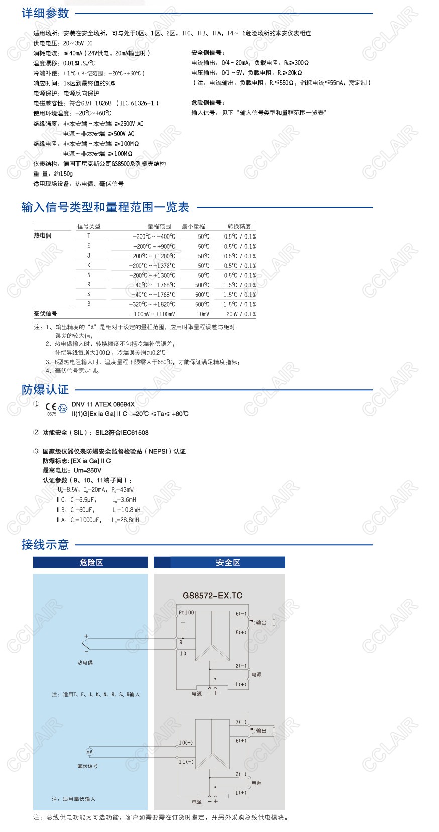 熱電偶、電位器的分度號、量程范圍等進(jìn)行組態(tài)。該產(chǎn)品需要獨立供電,電源、輸入和輸出三隔
