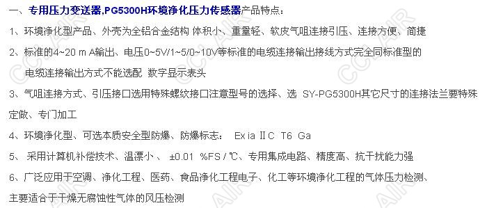 SY-PG5300H-10KPa 環(huán)境凈化型、輸出DC4~20mA