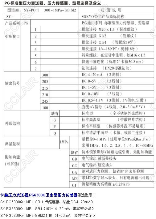 SY-PG6300Q-1MPa-GB (卡箍連接、輸出DC4~20mA)