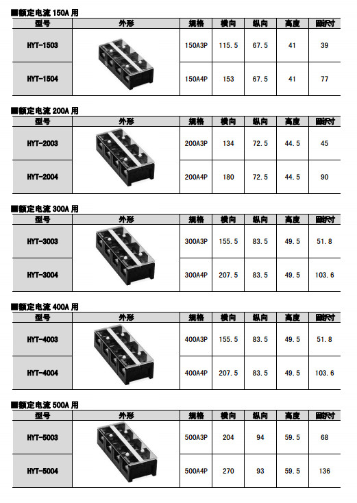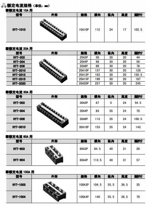 HYT-203,HYT-204,HYT-206,HYT-2010,HYT-2012,HYT-2015,HYT-2020,固定式端子排