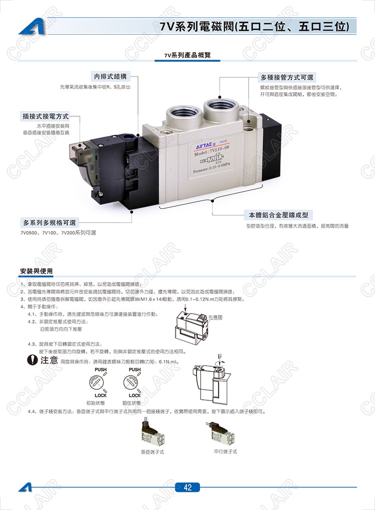7V0510-M5,7V0510-06,7V0510-08,7V0520-M5,7V0520-06,7V0520-08,AIRTAC電磁閥
