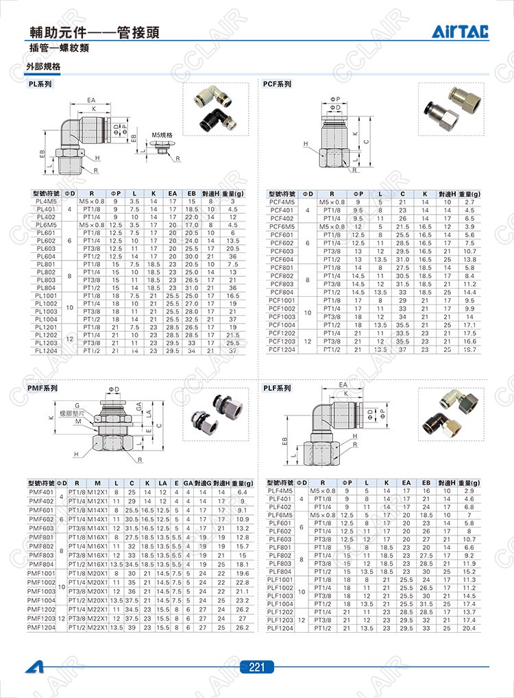 PL4M5,PCF6M5,PMF401,PLF4M5,PLL4M5,PHW401,PHF4M5,PKD6-401,PEB4M5,PYB4M5,PED4M5,PZB601,臺灣AIRTAC管接頭