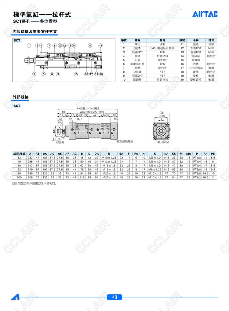 SCT32*25,SCT32*25-S,SCT32*50,SCT32*50-S,SCT32*75,SCT32*75-S,AIRTAC亞德客標準氣缸-拉桿式