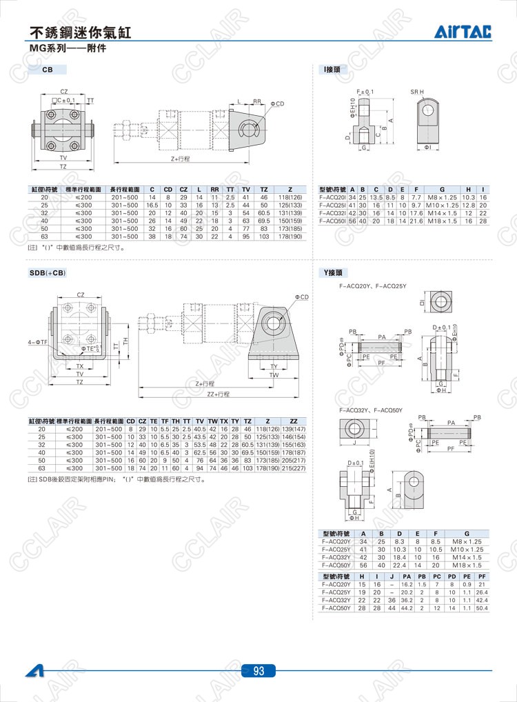 CB20,CB25,SDB20,SDB25,F-ACQ20I,F-ACQ25I,F-ACQ20Y,F-ACQ25Y,AIRTAC亞德客迷你氣缸