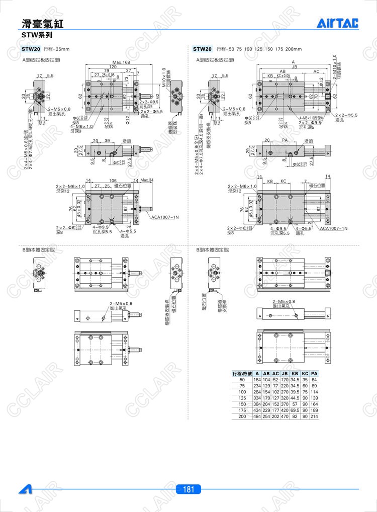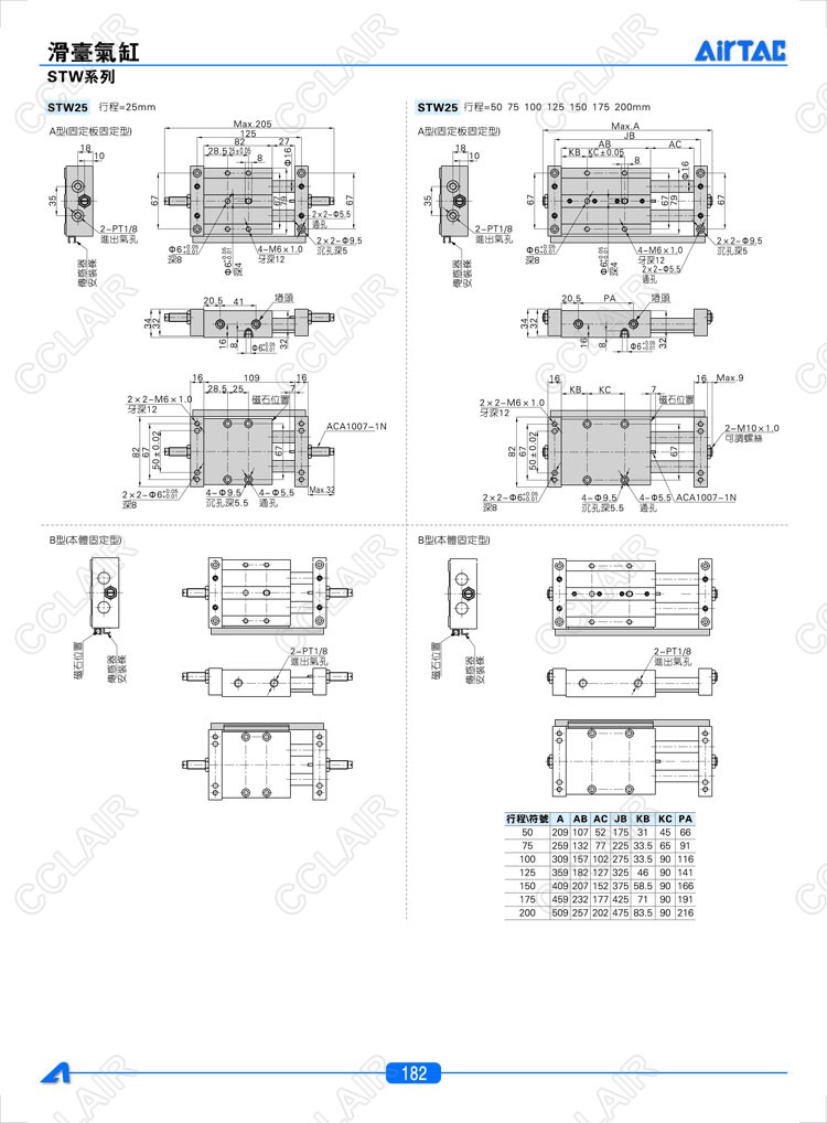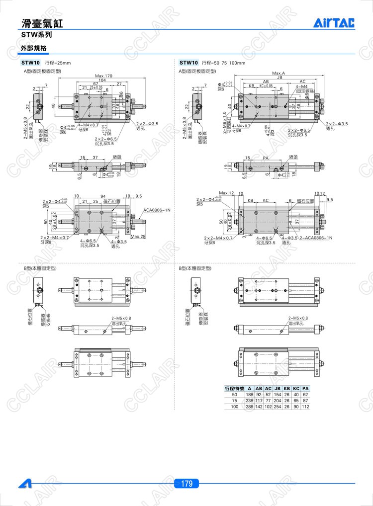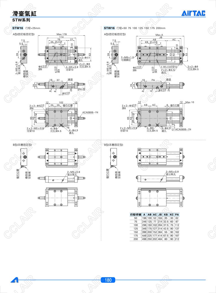 STW10*25-S,STW10*50-S,STW10*75-S,STW10*100-S,STW16*25-S,AIRTAC亞德客滑臺氣缸
