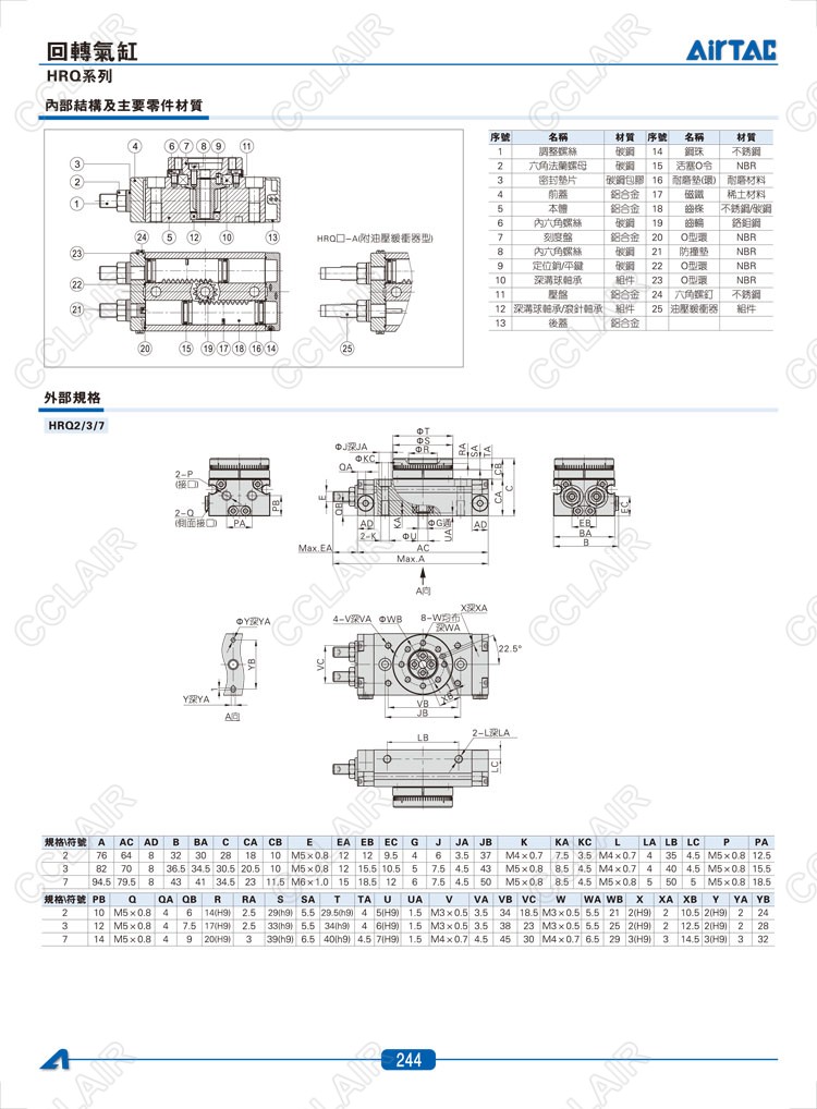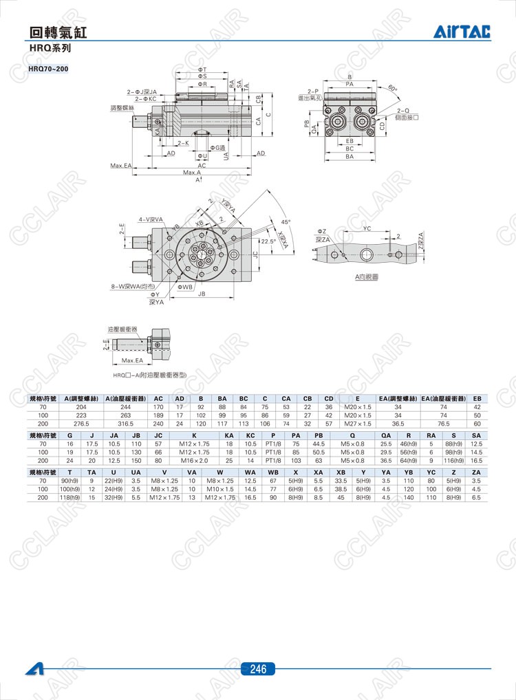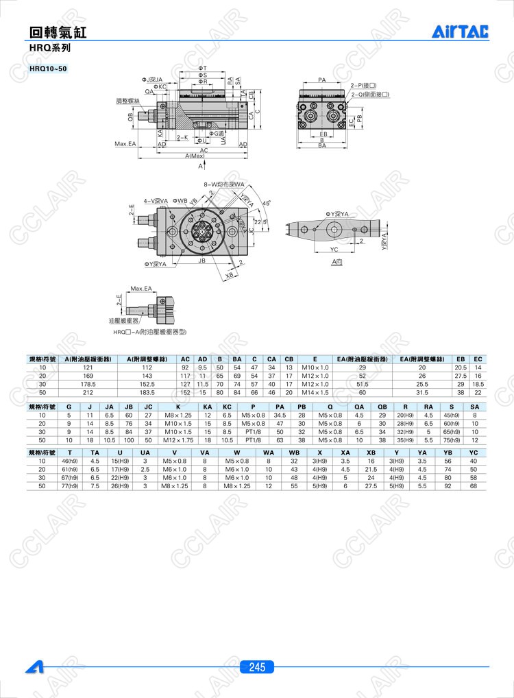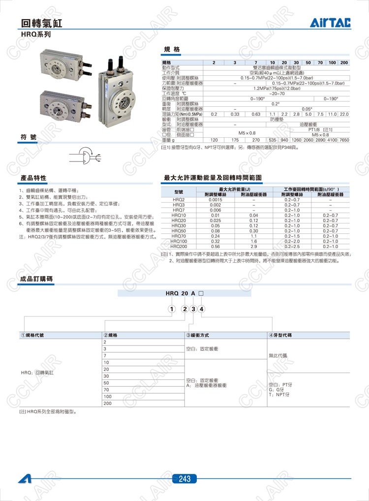 亞德客AIRTAC,HRQ2,HRQ3,HRQ7,HRQ10,HRQ10A,HRQ20,HRQ20A,HRQ30,HRQ30A,回轉氣缸