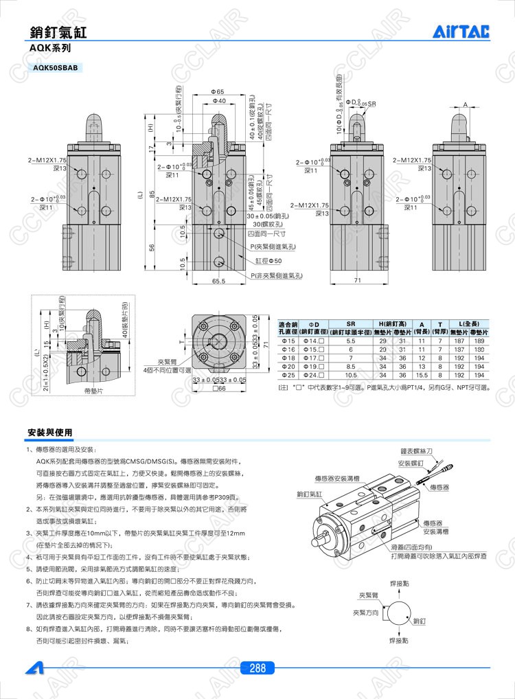 亞德客AIRTAC,AQK50SAAA,AQK50SAAB,AQK50SAAC,AQK50SBAA,AQK50SBAB,AQK50SBAC,銷(xiāo)釘氣缸