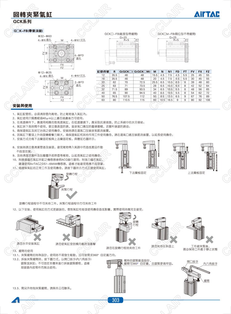 亞德客AIRTAC,QCKL12*10-S,QCKR12*10-S,QCKL20*20-S,QCKR20*20-S,QCKL40*30-S,QCKR40*30-S,回轉夾緊氣缸