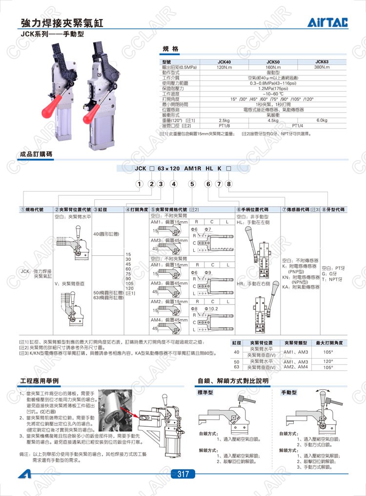 亞德客AIRTAC,JCK40*15AM1R,JCK40*15AM1C,JCKV40*15AM1R,JCKV40*15AM1C,JCKV40*15AM1L,焊接夾緊氣缸-手動(dòng)型