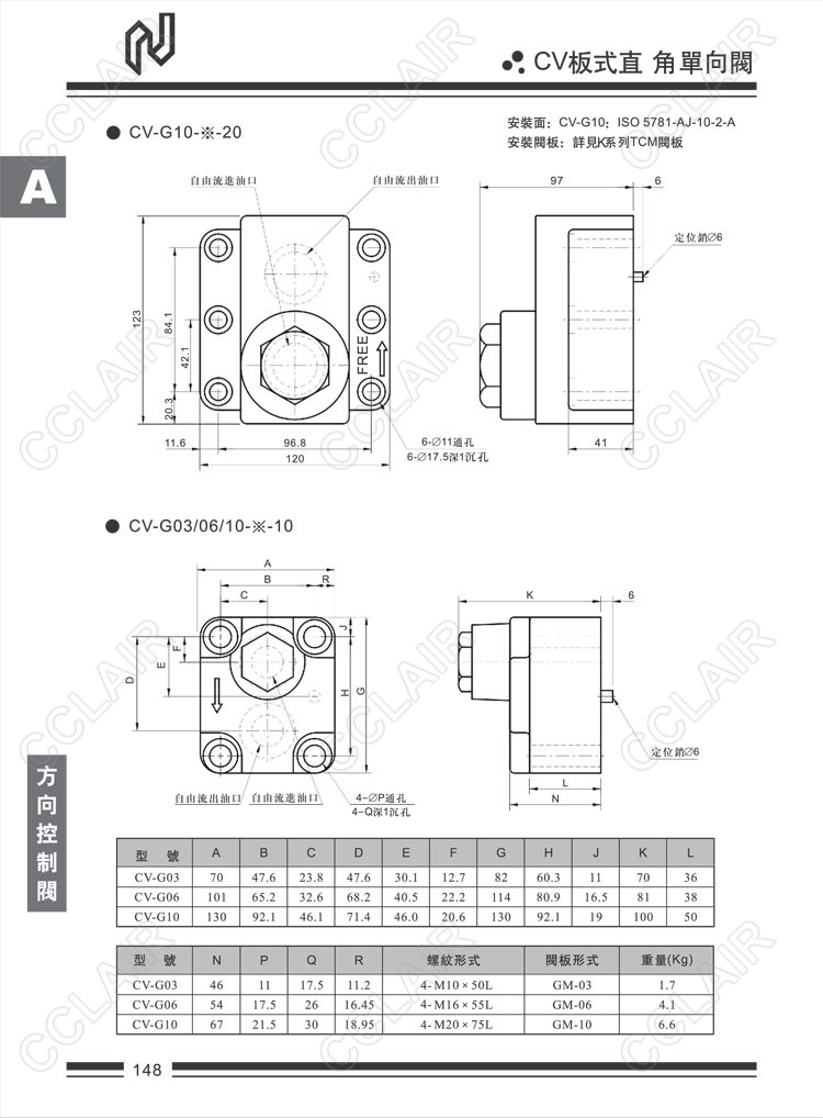 Northman臺灣北部精機,板式直角單向閥CV-G03-05-10,CV-G03-50-10,CV-G06-05-10,CV-G06-50-10,CV-G10-05-10,CV-G10-50-10,CV-G03-05-20,CV-G03-50-20,CV-G06-05-20,CV-G06-50-20,CV-G10-05-20,CV-G10-50-20