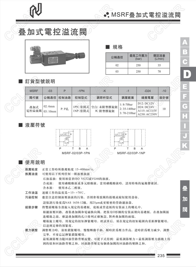 Northman北部精機,疊加式電控溢流閥MSRF-02-P-1PN-1-D12-10,MSRF-02-P-1NP-1-D24-10,MSRF-02-P-1NP-1-A115-10,MSRF-03-P-1PN-3-D12-10,MSRF-03-P-1PN-3-D24-10,MSRF-03-P-1NP-K-3-A115-10,MSRF-03-P-1NP-K-3-A230-10