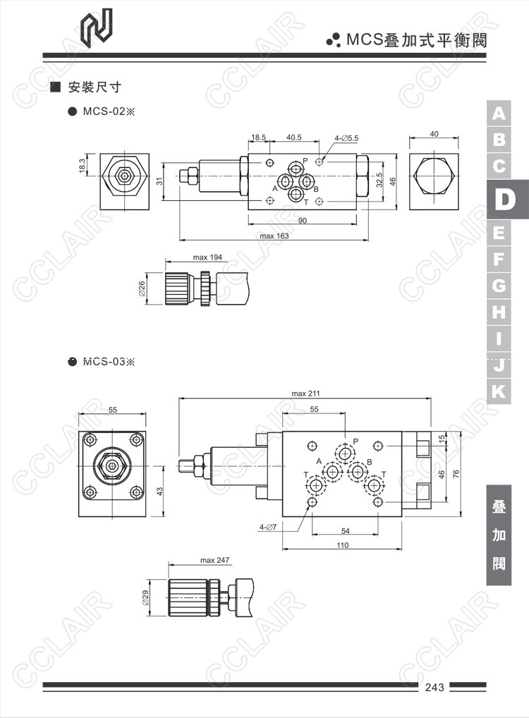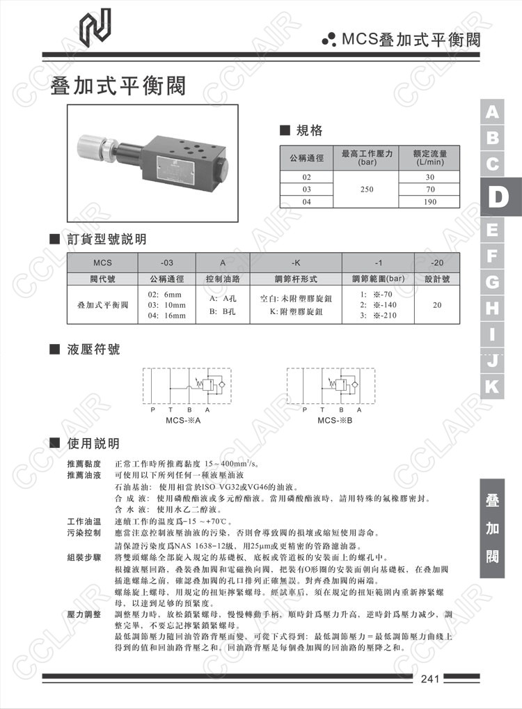 Northman臺灣北部精機,疊加式平衡閥MCS-02-A-1-20,MCS-02-A-2-20,MCS-02-A-K-1-20,MCS-02-A-K-2-20,MCS-02-A-K-3-20,MCS-03-A-1-20,MCS-03-A-2-20,MCS-03-A-3-20,MCS-04-A-K-2-20,MCS-04-A-K-3-20