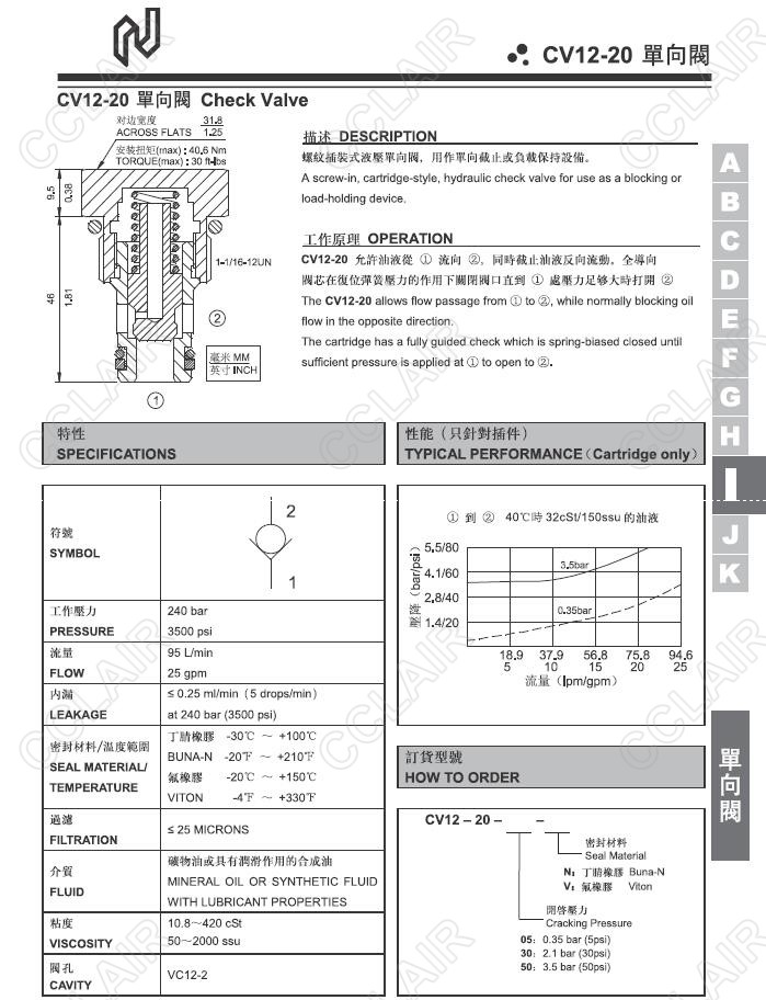 Northman臺灣北部精機,單向閥CV12-20-05-N,CV12-20-05-V,CV12-20-30-N,CV12-20-30-V,CV12-20-50-N,CV12-20-50-V