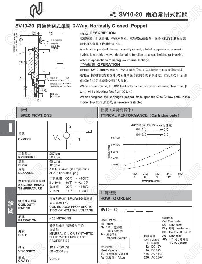 Northman臺灣北部精機,兩通常閉式錐閥SV10-20S-N-0-DG,SV10-20S-N-0-DL,SV10-20S-V-12-DR,SV10-20S-V-12-AG,SV10-20S-V-12-AP,SV10-20M-N-115-DG,SV10-20M-N-115-DL,SV10-20M-N-115-DR,SV10-20M-V-230-AG,SV10-20M-V-230-AP