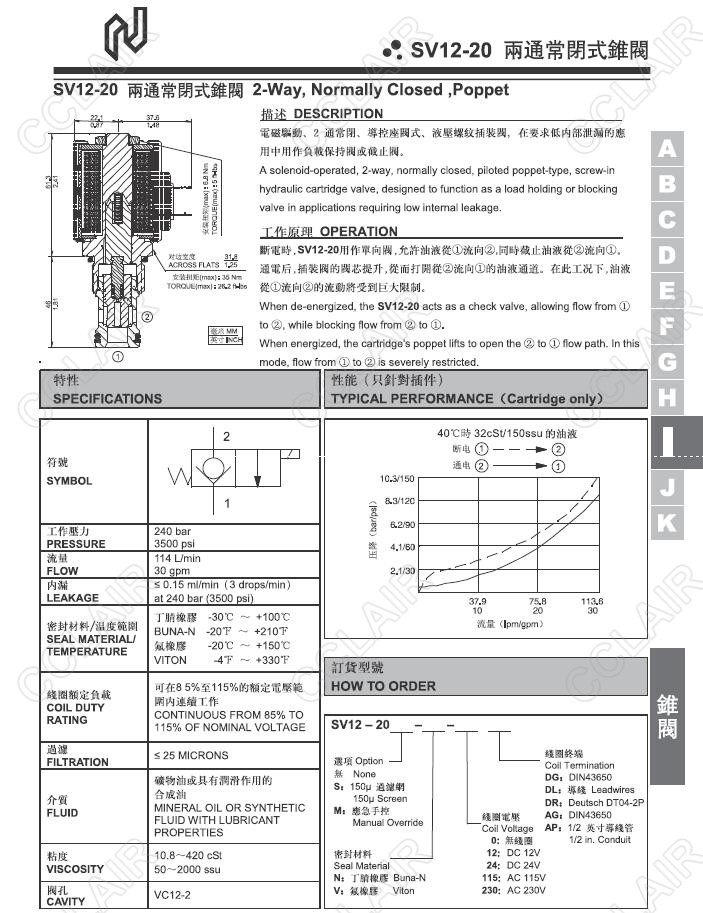 Northman臺灣北部精機,兩通常閉式錐閥SV12-20S-N-0-DG,SV12-20S-N-0-DL,SV12-20S-V-12-DR,SV12-20S-V-12-AG,SV12-20S-V-12-AP,SV12-20M-N-230-DG,SV12-20M-N-230-DL,SV12-20M-N-230-DR,SV12-20M-V-230-AG,SV12-20M-V-230-AP