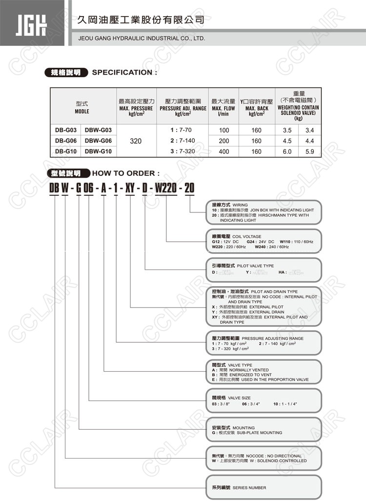 JeouGang臺灣久岡,電磁控制溢流閥DBW-G03-A-1-D-G12-10,DBW-G06-A-1-Y-Y-W220-10,DBW-G10-A-1-X-HA-W240-20,DB-G03-A-2-XY-HA-W110-10,DB-G06-A-2-HA-G12-10,DB-G10-A-2-XY-HA-W220-20,DB-G10-E-3-XY-HA-W240-10,DB-G10-E-3-XY-HA-W240-20