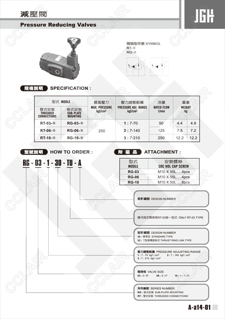 JeouGang臺灣久岡,減壓閥RG-03-1-30-TU-A,RG-03-1-32-TU-A,RG-06-3-30-TU-A,RG-06-3-32-TU-A,RG-10-1-30-TU-A,RG-10-1-32-TU-A,RT-06-3-30-TU-A,RT-06-3-32-TU-A,RT-10-1-30-TU-A,RT-10-1-32-TU-A,RT-10-2-30-TU-A,RT-10-3-30-TU-A,RT-10-3-32-TU-A