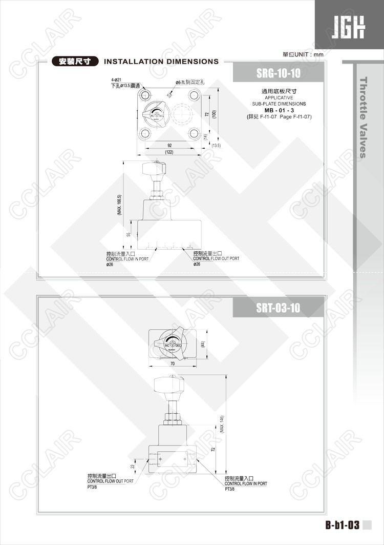 JeouGang臺灣久岡,節流閥SRG-03-10,SRG-06-10,SRG-10-10,SRT-03-10,SRT-06-10,SRT-10-10