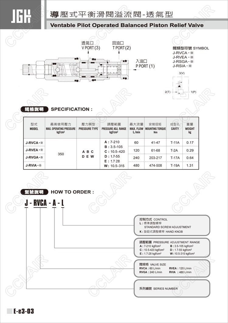 JeouGang臺灣久岡,引導式溢流閥J-RVCA-A-L-10,J-RVCA-A-K-10,J-RVCA-B-L-10,J-RVCA-B-K-10,J-RVEA-C-K-10,J-RVEA-D-L-10,J-RVEA-D-K-10,J-RVEA-E-L-10,J-RVEA-E-K-10,J-REGA-A- L-10,J-REGA-A-K-10,J-REGA-B-L-10,J-REGA-B-K-10,J-REGA-C-L-10