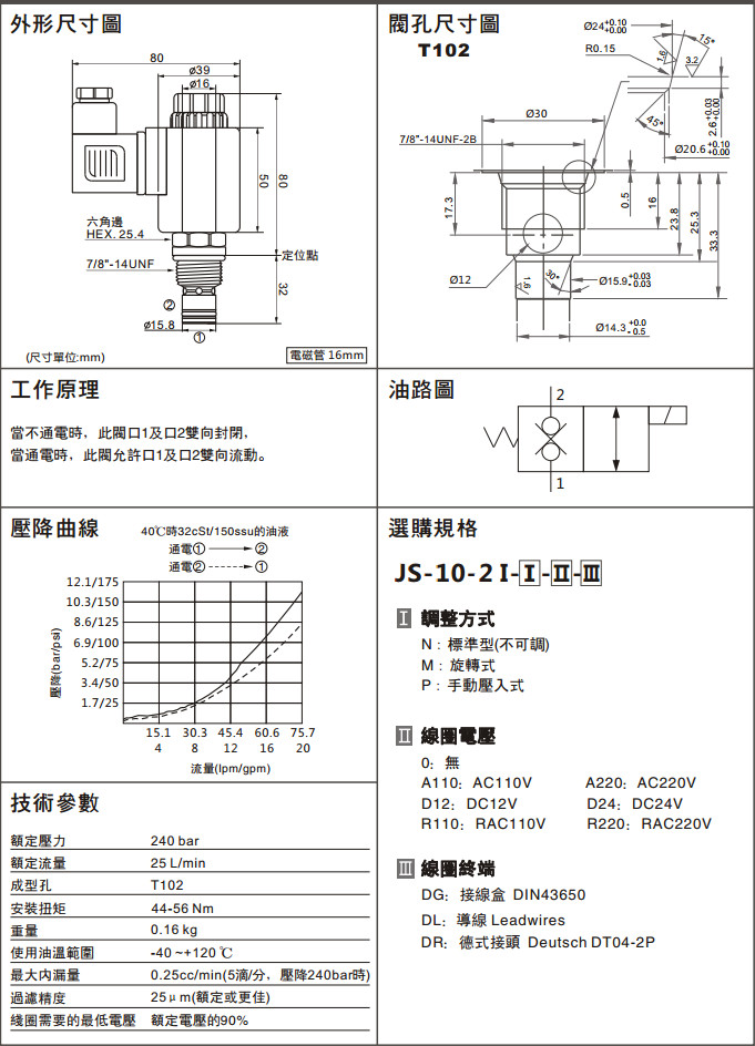 JS-10-2I-P-0-DR,JS-10-2I-P-A110-DR,JS-10-2I-P-D12-DR,JS-10-2I-P-R110-DR,JS-10-2I-P-A220-DR,JS-10-2I-P-D24-DR,JS-10-2I-P-R220-DR,兩通常閉型雙向截止電磁換向閥