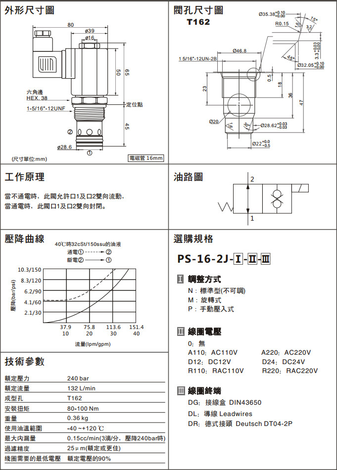 PS-16-2J-P-0-DR,PS-16-2J-P-A110-DR,PS-16-2J-P-D12-DR,PS-16-2J-P-R110-DR,PS-16-2J-P-A220-DR,PS-16-2J-P-D24-DR,PS-16-2J-P-R220-DR,兩通常開(kāi)型電磁換向閥