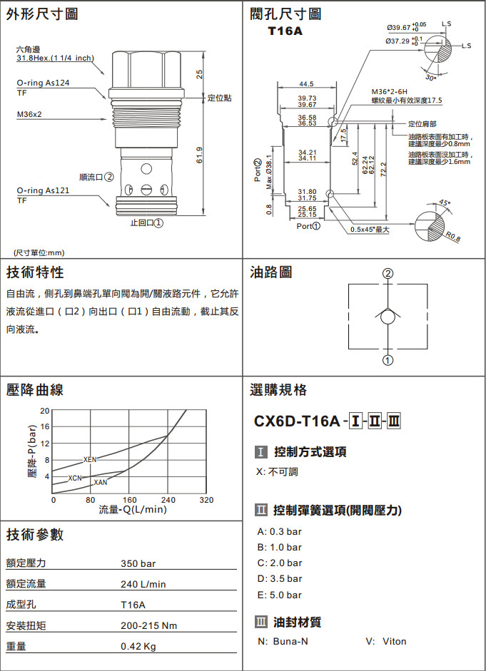 CX6D-T16A-XAN,CX6D-T16A-XBN,CX6D-T16A-XDV,CX6D-T16A-XEV,CX6D-T16A-XCN,CX6D-T16A-XDN,CX6D-T16A-XEN,CX6D-T16A-XAV,CX6D-T16A-XBV,CX6D-T16A-XCV,單向閥(口2通口1自由流)
