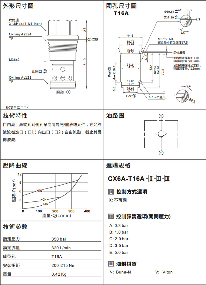 CX6A-T16A-XAN,CX6A-T16A-XCN,CX6A-T16A-XBV,CX6A-T16A-XEV,CX6A-T16A-XBN,CX6A-T16A-XDN,CX6A-T16A-XEN,CX6A-T16A-XAV,單向閥(口1通口2自由流)