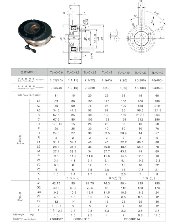 TL-C-0.6,TL-C-1.5,TL-C-2.5,TL-C-5,TL-C-10,TL-C-20,TL-C-40,內軸承式電磁離合器