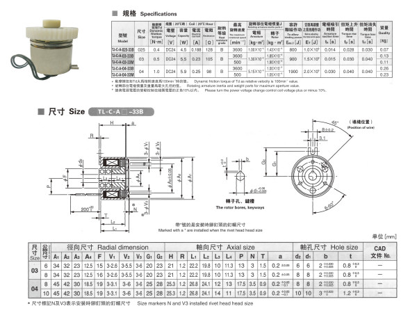 TL-C-A-02S-33B,TL-C-A-03-33B,TL-C-A-03-33M,TL-C-A-04-33B,TL-C-A-04-33M,微型電磁離合器