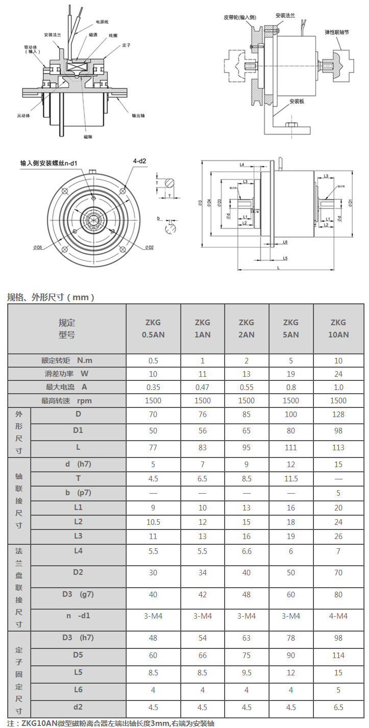 ZKG0.5AN,ZKG1AN,ZKG2AN,ZKG5AN,ZKG10AN,微型磁粉離合器